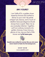 I am Trèfle d’Or, a golden clover kissed by fortune and crafted to dance on your wrist. My petals whisper luck, beauty, and a touch of rebellion because elegance should always have a spark. Wear me as your everyday talisman. Together, we’ll turn ordinary moments into golden chances. And every time you glance at me, may you feel a little braver, a little luckier, and a lot more you.