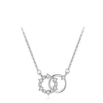 Two rings, eternally entwined this symbolic pendant necklace is crafted from pure 925 sterling silver and hand set with shimmering zircon. Suspended from a sleek, polished chain, it speaks of timeless bonds and graceful modernity. A delicate statement for daily elegance or meaningful gifting.