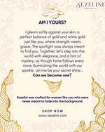 I gleam softly against your skin, a perfect balance of gold and white gold just like you, where strength meets grace. My geometric lines catch the light with every glance, whispering of quiet glamour and effortless allure, as if the spotlight was always meant to find you. Together, we step into the world with poise, elegance, and a hint of mystery, as though fame follows your every move. Let me be your secret shine… can we become one? Allow me to complete your story with my elegant grace.