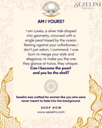 I am Lunéa, a silver tide shaped into geometry, crowned with a single pearl kissed by the ocean. Resting against your collarbones, I don’t just adorn, I command. I was born to merge your style and elegance, to make you the one they glance at twice, the name they whisper. Can I become the pearl and you be the shell?