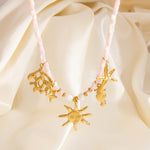 Set on a playful beaded chain, this multi-charm piece is perfect for beachside elegance, casual luxury, or sunset banquets a joyful tribute to warmth, freedom, and her most radiant moments.